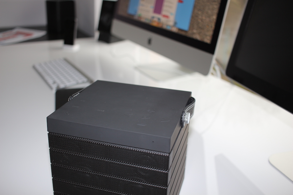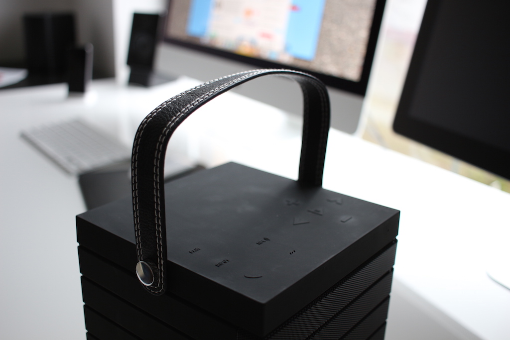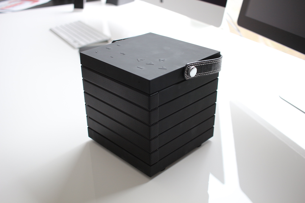 Na úvod vás upúta kvalitné spracovanie reproduktoru, ktorý má (ako som už spomínal) tvar kocky. Ale nie je to len obyčajná kocka, je to kocka s koženým pútkom, vďaka ktorému je držanie reproduktoru pri jeho prenášaní veľmi pohodlné. Ergonomické riešenie zároveň zabezpečí, že pri dlhodobom prenášaní vás nebudú bolieť ruky a tiež predídete riziku, že by vám náhodou padol na zem. Prevládajúcim materiálom je v tomto prípade plast, výnimku tvoria jedine kovové mriežky na prednej strane reproduktoru. Tie sú tvarované v súlade so zvyškom reproduktoru a teda sú na nich vyhĺbené čiary. Samotný reproduktor teda pôsobí, akoby išlo o 7 na sebe položených plôch. Rozhodne tiež poteí, že na reproduktore nič nevŕzga, čo sa u niektorých reproduktorov naopak deje a rozhodne to nepoteší.