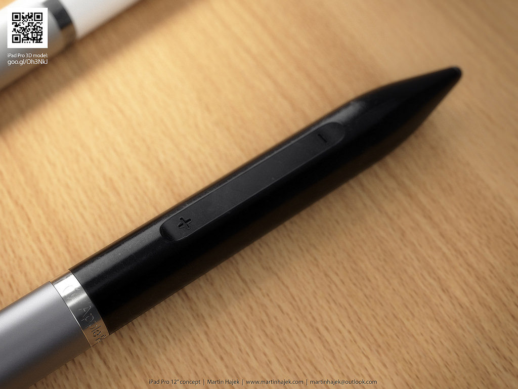 Martin proto do svých renderů zakomponoval i stylus, který však není vytvořen na základě uniklých schém nebo něčeho podobného, ale pochází pouze z Martinovi hlavy. iPad Pro by se měl dostat do prodeje v první polovině letošního roku s tím, že se však o tomto tabletu spekuluje v podstatě již od chvíle, kdy se v roce 2010 iPad poprvé ukázal světu.
