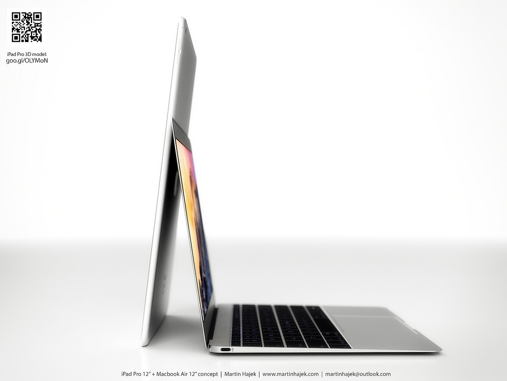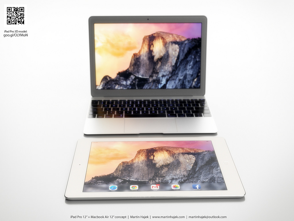 Oficiálně zatím nevíme, jak budou novinky vypadat, ale dle uniklých renderů (jejichž pravost není potvrzena) a dle analytických zpráv vytvořil Martin rendery očekávaných novinek letošního roku, můžete se tak podívat jak bude vypadat iPad Pro a MacBook Air 12″ tváří v tvář.