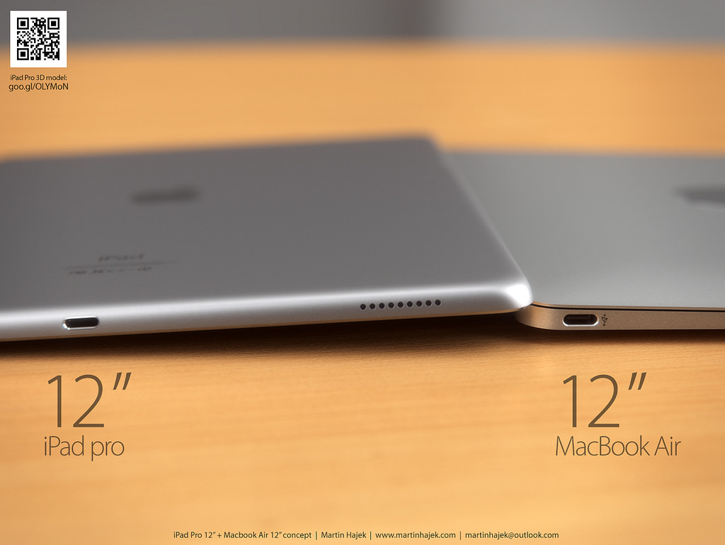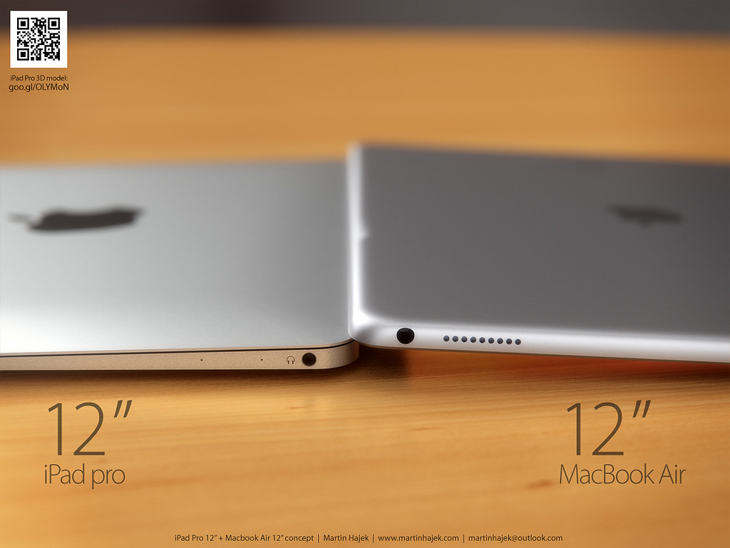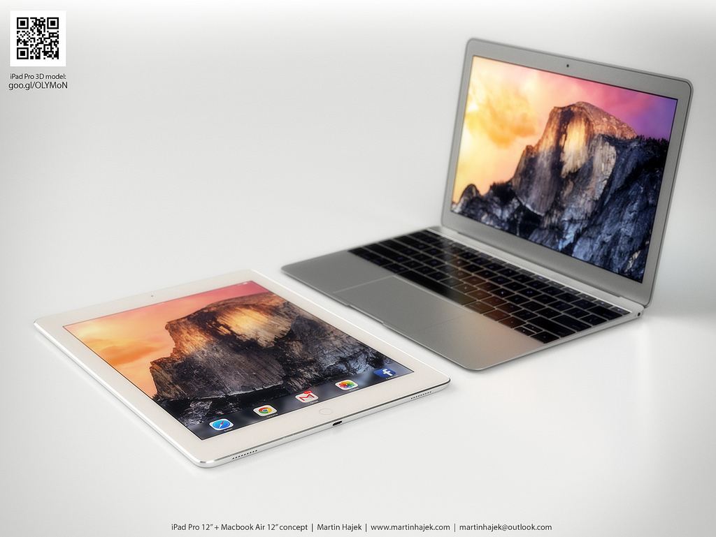 Oficiálně zatím nevíme, jak budou novinky vypadat, ale dle uniklých renderů (jejichž pravost není potvrzena) a dle analytických zpráv vytvořil Martin rendery očekávaných novinek letošního roku, můžete se tak podívat jak bude vypadat iPad Pro a MacBook Air 12″ tváří v tvář.