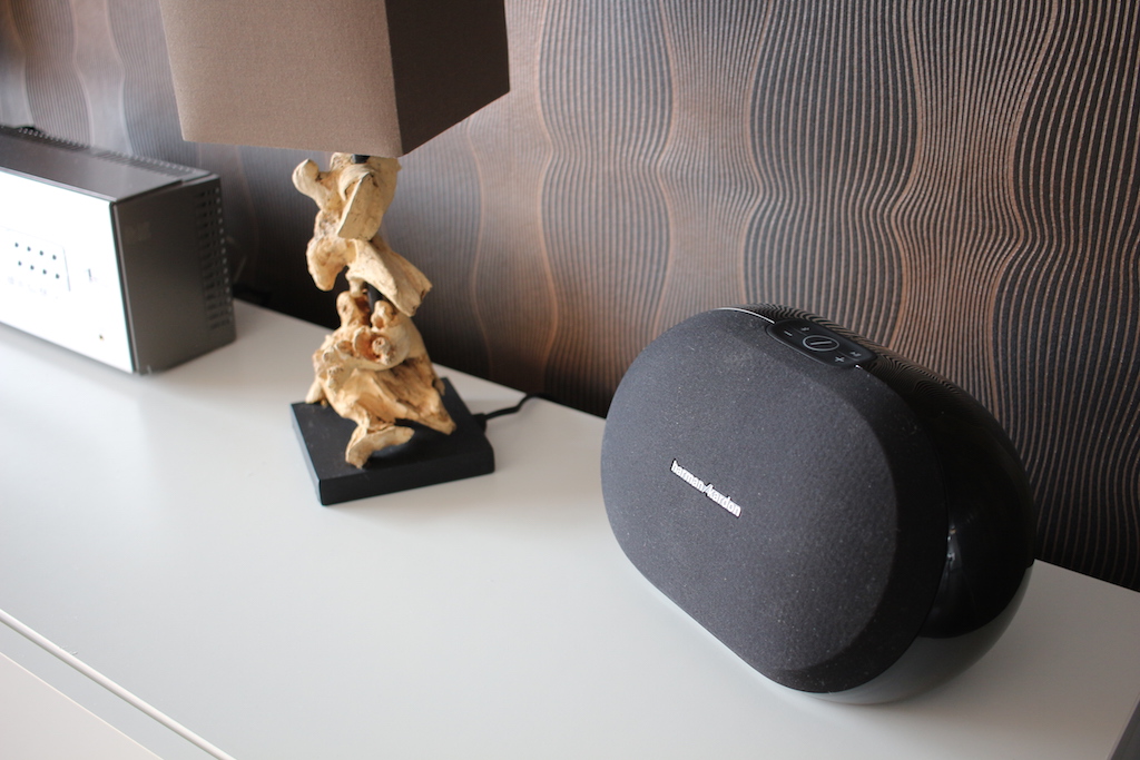 Když už jsme zmínil Bluetooth, musím podotknout, že se mi ještě nikdy v životě nestalo, aby se reproduktor spároval tak rychle a bezchybně s iPhonem, jako je tomu právě u Omni, takže poprvé smekám hned na úvod. Přední mřížku pak zdobí logo společnosti harman/kardon. Zajímavě je řešena spodní část, která ohraničuje gumová podložka, na které celý reproduktor sedí. Podložka tlumí rezonanci a funguje opravdu skvěle. Za to musím Harman pochválit, protože mnohdy i k dražším reproduktorům musíme podložky dokupovat zvlášť, což je jistě škoda. Naproti tomu u Omni jsou již součástí samotného reproduktor.