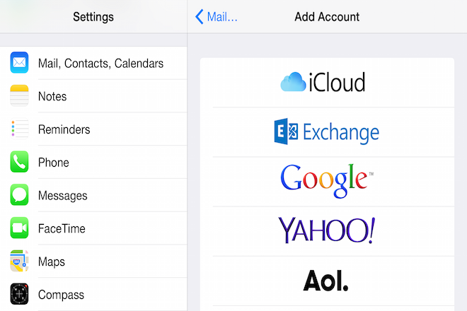 Co se týče všech mailů, následujte podobný postup. iOS 8 umožňuje propojit telefon či tablet s několika službami, jako Microsoft Exchange, Yahoo!, AOL nebo Outlook. Samozřejmostí je také možnost nastavit vlastní účet, pokud používáte jinou službu.
