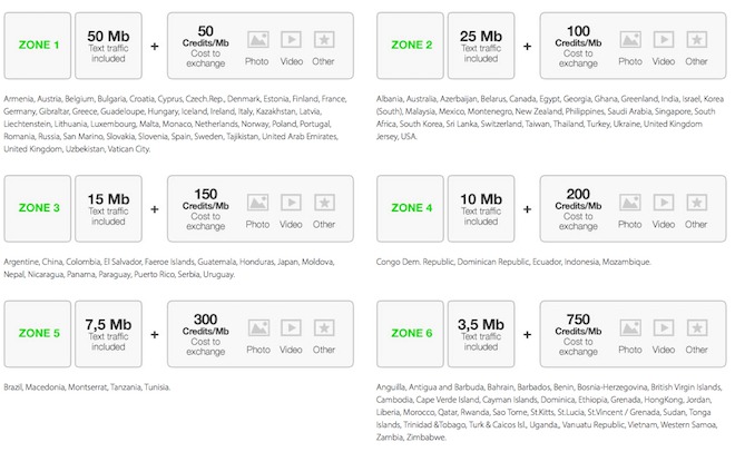 Chcete-li ovšem zasílat také multimediální soubory, mezi které patří obrázky, videa a hlasové zprávy, pak je nutné si WhatSIM nabít speciálními kredity, které společnost nabízí. Možnost využití jednotlivých kreditů se liší v závislosti na tom, v jaké zemi se právě nacházíte. Jednotlivé země jsou totiž rozdělené do několik zón a v každé zóně stojí jednotlivá činnost určitý počet kreditů. Jistě vás potěší, že většina zemí Evropy se nachází v první zóně, tedy v té nejlevnější. Cestujete-li často po Evropě a využíváte WhatsApp jako primární aplikaci pro posílání zpráv, pak by WhatSIM mohla být právě pro vás.