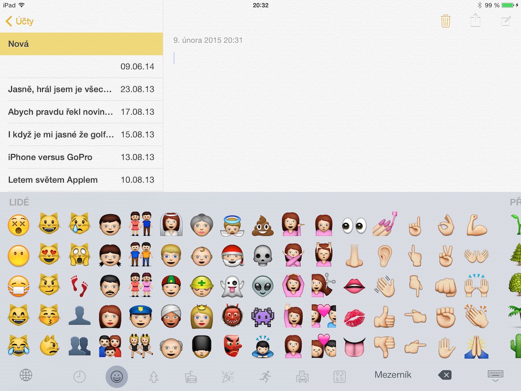 Nove smajliky?? Ja mam IOS 8.1.3 a nechcem sa hadat ale mne sa zda, ze ich mam vsetky.. detailne som ich nekontroloval mozno su niektore nove ale skor by som povedal, ze su len rozdelene prehladnejsie.. ci? :)