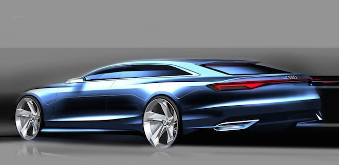 Keď táto automobilka prestavila v roku 2014 na autosalóne v Los Angeles štúdiu Prologue ukázala tým svoje dizajnové smerovanie na najbližšie obdobie, ale taktiež aj takmer konečný automobil, ktorý by sa mal do 2 rokov začať predávať pod označením Audi A9. Audi nechcela zaspať na vavrínoch nakoľko už Mercedes predstavil svoju tiredu S vo verzii Coupé a BMW usilovne precuje na znovuzrodení rady 8. Všetky tieto zmieňovené automobily majú byť akýmsi gigantickým typom kupé a majú sa zaradiť na najvyšší stupienok v ponuke automobiliek.