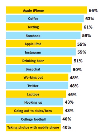Vítězem ankety se stal jednoznačně iPhone, který překonal dokonce pití kávy, sociální síť Facebook nebo pivo a fotbal. iPhone je pro americké studenty v současné době nejvíc in. Na páté pozici poté skončil iPad, tedy další produkt od společnosti Apple.