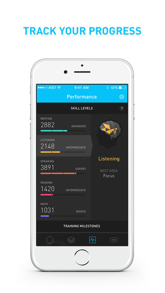 Elevate je v App Storu od května 2014. Jde o tak zajímavou záležitost, že se tato položka stala podle Applu aplikací roku. Jde o freemium model, musíte si, stejně jako u Lumosity, za další funkce připlatit. Elevate vám pomůže protrénovat paměť, porozumění či sluch. To ale samozřejmě není všechno, skrze zábavná cvičení a úkoly si zlepšíte i čtení či rozšíříte svůj matematický talent. Vše se poté uloží a přednese v krásném provedení, a tak vidíte všechny výsledky najednou a můžete vidět, jak na tom jste. Dokonce i zjistíte, jakou část mozku jste právě procvičili.