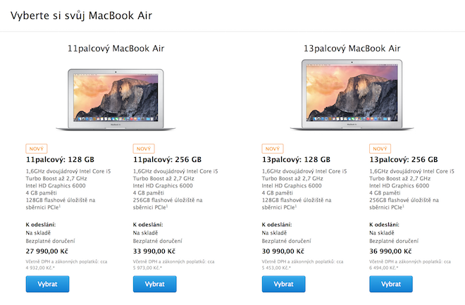 Výrazné zdražení se samozřejmě dotklo veškerých počítačů Mac, kromě iMacu s Retina 5k displejem, u kterého cenovka zůstala stejná. Nové MacBooky sice disponují novým procesor, rychlejší pamětí RAM a rychlejším SSD diskem, ovšem i tak by neměla cenovka stoupat. Kromě zdražení jablečných počítačů také výrazně zdražili iPhony a iPady, u který je nyní cenovka opravdu vysoko a to jsme se samozřejmě ani u jednoho iOS produktu nedočkali žádné aktualizace. Za vše totiž může oslabování koruny vůči euru a dolaru a také oslabování euru vůči dolaru a posilování dolaru. Ceny v USA totiž zůstávají stejné, jako tomu bylo doposud. Na rozdíly v cenách před dnešní Keynote a po ní se můžete podívat na přiložených screenech níže.