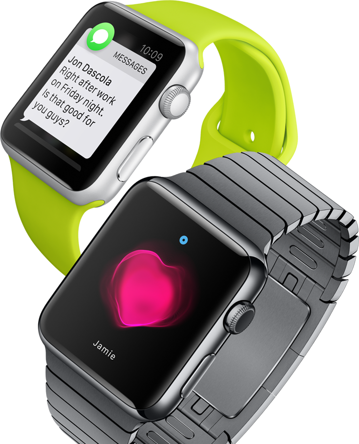 Apple Watch sú tiež intímnym zariadením a viete s nimi prijať hovory presne tak, ako to umožňujú konkurenčné inteligentné hodinky a môžete s nimi telefonovať. Máte na nich k dispozícii plnohodnotné e-maily a môžete si prečítať nielen celú správu, ale aj vidieť prílohy ako fotky. Apple tu opäť prispôsobil intímnu funkciu „Digital Touch“, čo je sociálna funkcia, ktorú môžu využívať majitelia Apple Watch a umožní im zdieľať obrázky, „šťuchnúť ich“, alebo im poslať svoj krvný tep.