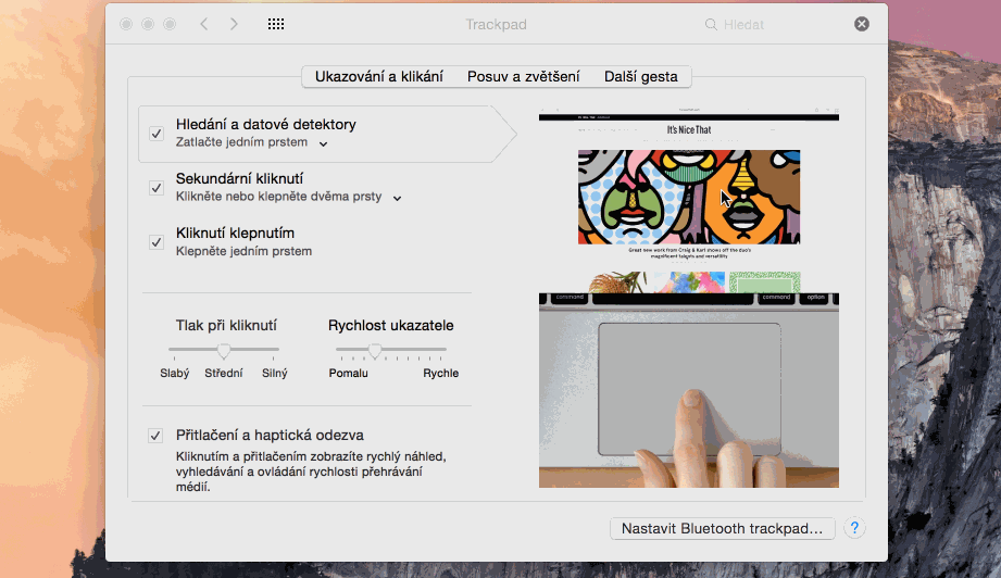 *Nastavení Force Touch trackpad v OS X 10.10.2