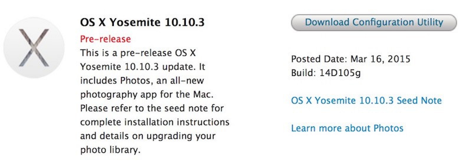 Pokud patříte mezi testery společnosti Apple v rámci Apple Beta Seed Program, do kterého jste se mohli přihlásit zdarma, máte od dnešního dne možnost testovat OS X 10.10.3. Jedná se o první verzi OS X, která přináší aplikaci Photos. Více informací o aplikaci Photos se dočtete přímo v článku: Nová aplikace Photos pod drobnohledem naší redakce a rozhodně vám přijde vhod článek: Jak připravit knihovnu z iPhoto pro novou aplikaci Photos.