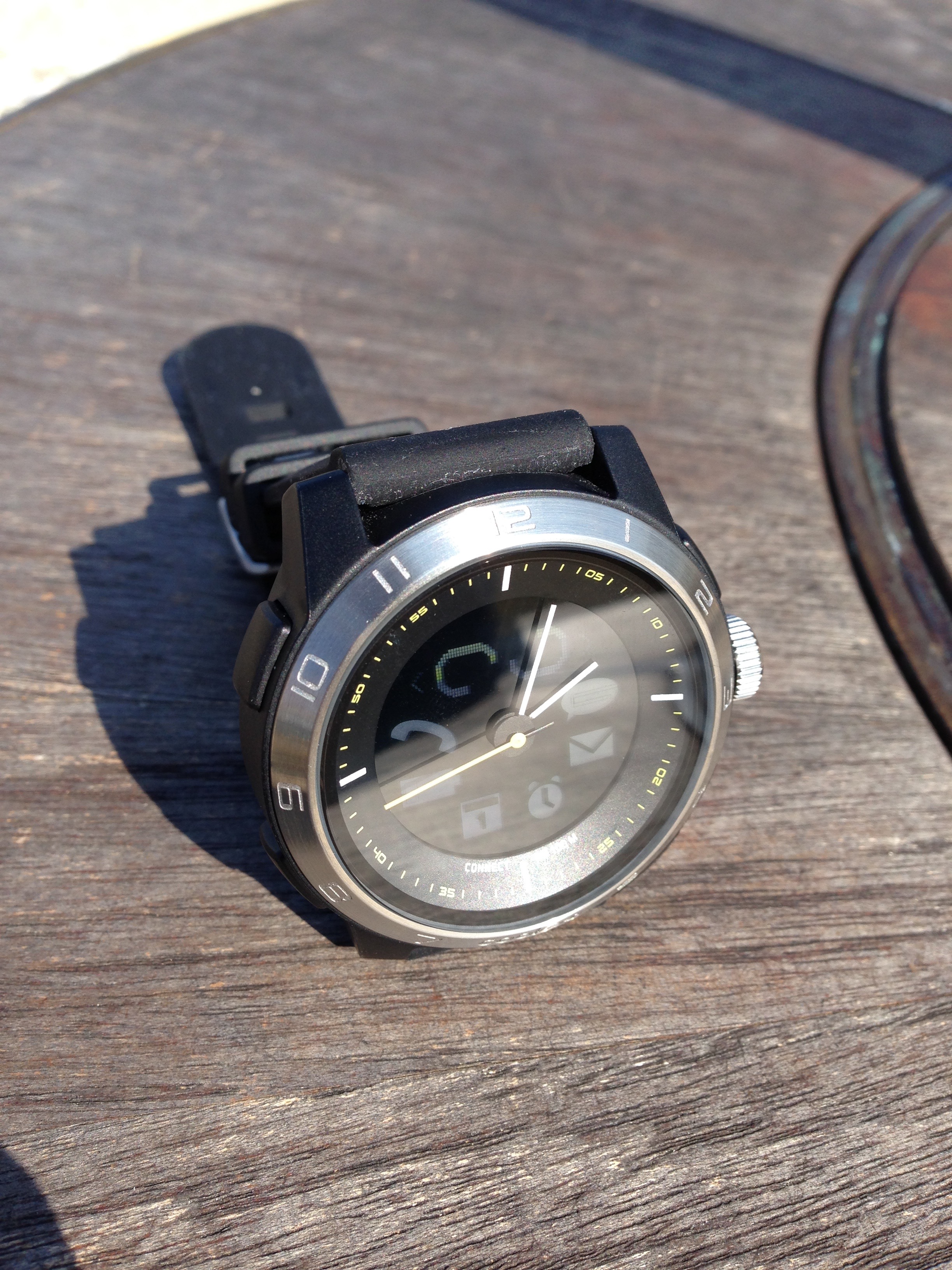 Cookoo 2 Watch je nástupce svého ne příliš povedeného předchůdce. Hodinky disponují jak běžným ručičkovým ciferníkem, tak i displejem, který vám ukáže čas v digitální podobě. Oba systémy běží zcela odděleně a napájí je samostatná baterie. Obě baterie jsou po odejmutí spodního víčka vyměnitelné. Baterie, která pohání obyčejné hodinky vydrží přibližně 3 roky a baterie pohánějící displej, který ukazuje digitální čas, notifikace a zajišťuje propojení s telefonem vydrží několik měsíců, což je přijemné, protože se nemusíte starat o žádné nabíjení a baterii koupíte za 30 Kč.