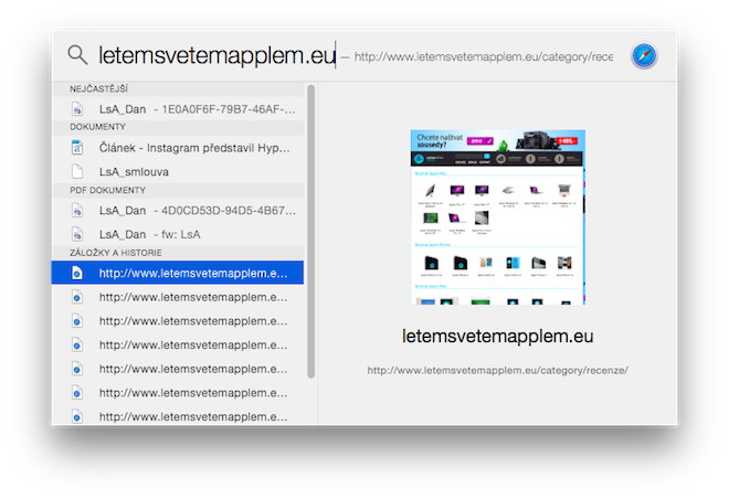 Pokud používáte OS X, pak jistě víte, že Spotlight je důležitá a hlavně praktická věcička, díky které můžete okamžitě vyhledat a otevřít aplikaci, najít kontakt a žačít mu volat jak přes FaceTime, tak pomocí iPhonu či třeba najít nějaký dokument nebo definici na wikipedii. Věděli jste však, že pomocí Spotlight můžete zadat adresu stránky a v náhledu se vám zobrazí tato stránka, aniž byste museli otevírat Safari? Pokud ne, tak si pojďme ukázat, jak na to.