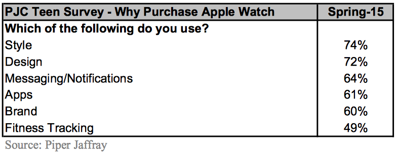 V súčasnosti teda záujem o Apple Watch prejavilo len 11% opýtaných teenagerov, ktorí chcú hodinky najmä kvôli štýlu (74%) a dizajnu (72%). Medzi ďalšie hlavné dôvody, prečo si kúpiť Apple Watch, patrí možnosť posielania a prijímania správ a notifkácií (64%), možnosť používať aplikácie (61%) a nakoniec 60% vraví, že si kupujú Apple Watch kvôli značke. Pokles o 5% si Gene Munster vysvetľuje tak, že hodinkám chýba tá správna aplikácia, ktorá by z nich spravila produkt, bez ktorého by človek nemohol existovať. Vyzerá to však, že nateraz si teenageri vystačia bez inteligentných hodiniek, respektíve si vystačia so svojimi vlastnými hodinkami, aj keď počet majiteľov smartwatch produktov je tiež malý – len 5% opýtaných má inteligentné hodinky. Urýchliť by to mohli ceelbrity, ktoré už nosia svoje Apple Watch a ktoré sa s nimi chvália na sociálnych sieťach, ako napríklad na Instagrame.
