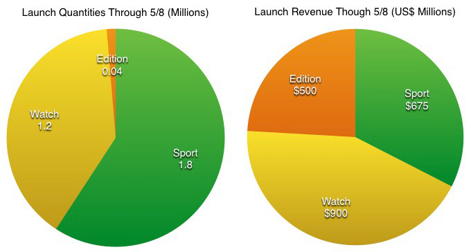 Ovšem právě vzhledem k ceně chytrých hodinek a vzhledem k vysokým prodejům střední edice Apple Watch z nerezové oceli se zjistilo, že tento model Applu vydělává nejvíce a to více než 60% z celkové částky, které kalifornská společnost z Apple Watch již utržila. Konkrétně tedy střední edice vydělala Applu již 900 milionů dolarů. Dále pak Apple Watch Sport podle odhadů již Applu vydělaly 675 milionů dolarů, následované Apple Watch Edition s 500 miliony dolarů. Celkově tedy Apple Watch vydělaly Applu již přes 2 miliardy dolarů.