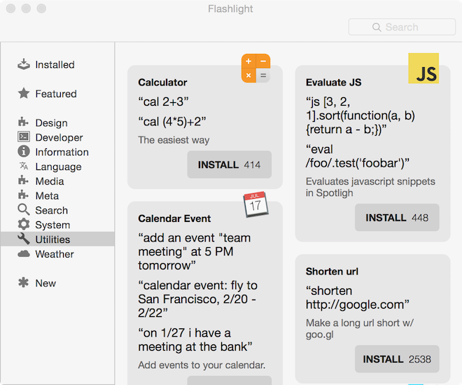 Takto bych mohl pokračovat, no vlastně do nekonečna. Vtip je totiž v tom, že zatím co základní Flashlight nabízí základní zhruba stovku příkazů, přes které můžete například i restartovat počítač nebo se z něj odhlásit, vysunout CD z mechaniky a tak podobně, k dispozici máte instalaci stovek dalších modulů, které jsou děleny podle kategorií a umožní vám zadávat další příkazy, mezi které patří například takové srandy jako je přidání schůzky do kalendáře, přeložení slov nebo frází z různých jazyků nebo například vytvoření zkráceného url, případně akce související s nějakou službou jako je například Facebook. Pořád je vám to málo? Pak není nic snadnějšího než si pomocí návodu na stránkách vývojářů vytvořit vlastní příkazy!