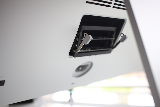 Samotná výměna probíhá celkem jednoduše a nepotřebujete nic šroubovat. Stačí když vypnete počítač a odpojíte jej od elektřiny tím, že vytáhnete napájecí kabel, pod kterým se nachází tlačítko, jenž je nutné stisknout, aby se odklopil přístup k paměti. Tlačítko musíte nečím opravdu silně zatlačit tak až se poklop chránící paměti otevře a vy jej můžete vytáhnout. nyní již jen stisknete dvojici bočních páček a vysune se ve stylu R2D2 čtveřice slotů, do kterých zasunete paměti. Nasadíte zpět kryt a veškerá sranda končí, nyní už totiž stačí počítač jen zapnout. O tom že všechny paměti fungují tak jak mají se snadno přesvědčíte přímo v About This Mac.