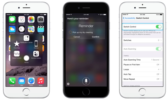 Apple původně začal integrovat funkce v záložce Zpřístupnění na svém OS X. Později podobné funkce zavedl také do iPhonu, iPadu a iPodu Touch. V současné době i mnoho podobných funkcí podporují Apple Watch, které umí zobrazit větší text nebo také umí funkci VoiceOver. Tim Cook se však nechal slyšet, že do Apple Watch budou v dalších generacích přidány některé nové funkce, které umožní lidem s nějakým omezením s nimi pracovat. V současné době však nové funkce nebylo možné přidat.