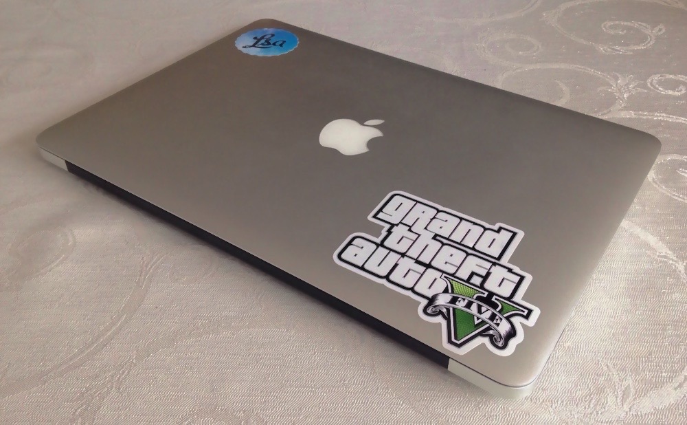 Po skončení strednej som taktiež uvažoval nad podobnými nálepkami, dodnes ma to ale už prešlo, myslím, že takáto samostatná nálepka nevypadá dobre, to GTA je trošku kontraproduktívne, každopádne v reklame od Apple bolo veľa fakt vkusne polepených MacBookov.