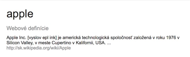 Vyhľadávač Google taktiež umožňuje definovať rôzne anglické slová. Stačí ak do vahľadávacieho riadku napíšete slovíčko „define“ a zaň napíšete slovo, ktoré si chcete nechať vyložiť.