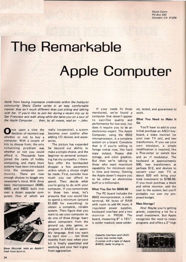 Celý článek „Remarkable Apple Computer” z února roku 1977 najdete níže, i když jde o poměrně složitý a technicky založený kus. My vám přeložíme alespoň ty jednodušší části: