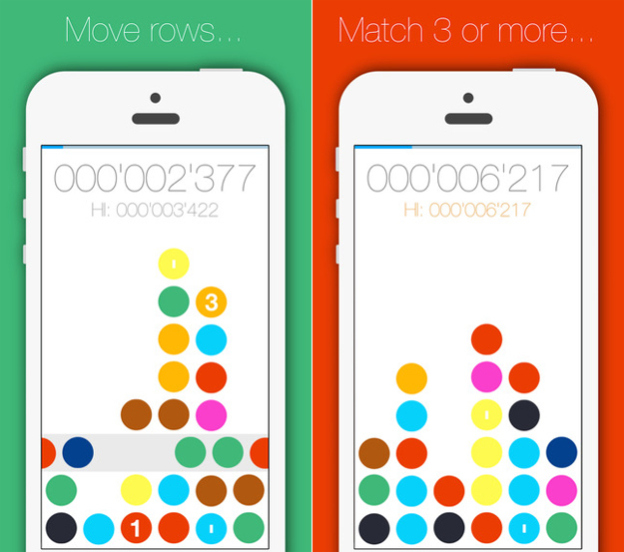 Jednoduchá, ale chytlavá hra. Spojujete stejné barvičky a postupujete úrovněmi, kde se vám zvyšuje obtížnost. Apple ji dokonce umístil v kategorie „Best New Games.“