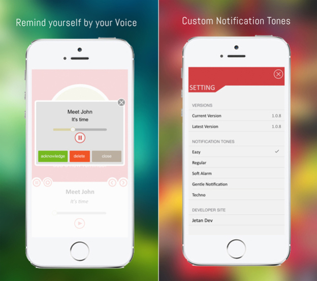 Aplikací na připomínání je spousta. Dokonce i samotný iOS obsahuje aplikaci Připomínky, která mnohdy postačí. Eazy Reminder však nabízí zase o něco více, než běžné připomínky. Stačí si totiž nahrát svůj hlas, co chcete připomenout, nastavit čas připomenutí a vše je hotovo. Poté jen dostanete upozornění, kde vám aplikace vašimi slovy řekne, co jste chtěli.