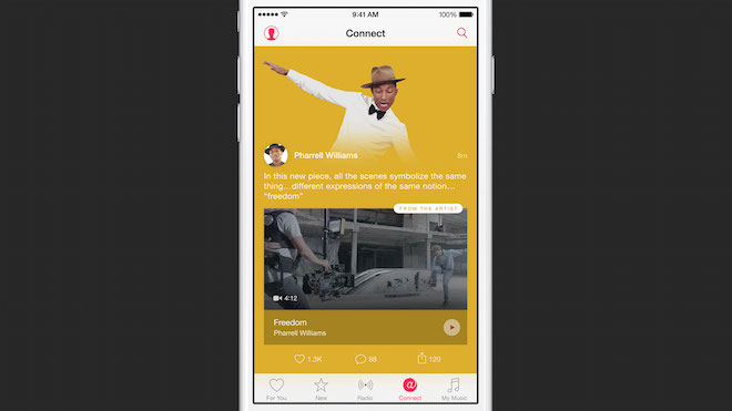 Umělci a fanoušci teď mají možnost spojit se přímo mezi sebou v Apple Music Connect. Přes Connect můžou umělci sdílet texty, fotografie z backstage, videa a dokonce i zveřejnit nejnovější písničky přímo do iPhonů posluchačů. Fanoušci mohou komentovat a lajkovat cokoliv co umělci zveřejnili, a poté vše sdílet přes Messages, Facebook, Twitter a email. Když komentujete, umělci mají možnost odpovědět přímo na váš příspěvek.