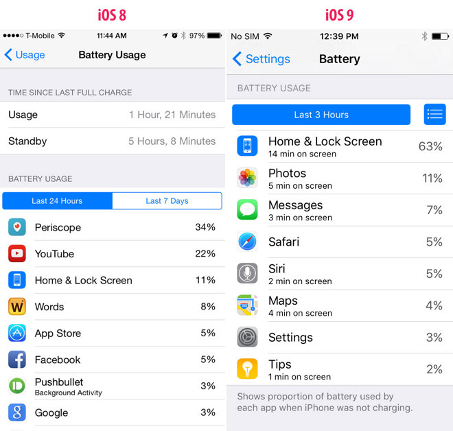 Apple slibuje, že druhá zmíněná funkce dokáže prodloužit výdrž iPhonu o jednu hodinu. Aktivováním první funkce, tedy režimu nedostatku energie, se výdrž iPhonu prodlouží až o celé 3 hodiny. Jaká je realita lze prozatím jen těžko říct, ale osobně mohu potvrdit, že od testování z pondělního večera jsem zaznamenal rohodně delší výdrž mého iPhonu 5 s iOS 9, než s iOS 8.4. Na druhou stranu někteří naši čtenáři se zase zmiňovali, že s iOS 9 jim jde baterie rapidně dolů.