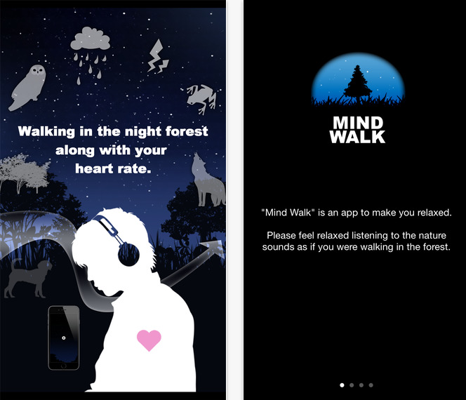 Mind Walk je zvukovou aplikací, která by vám měla pomoct, abyste se cítili opravdu zrelaxovaní. Aplikace obsahuje databázi více než 180 přírodních zvuků. V aplikaci je aplikována jednak vzdálenost, kterou ujdete během dne v realném životě a také váš srdeční tep.