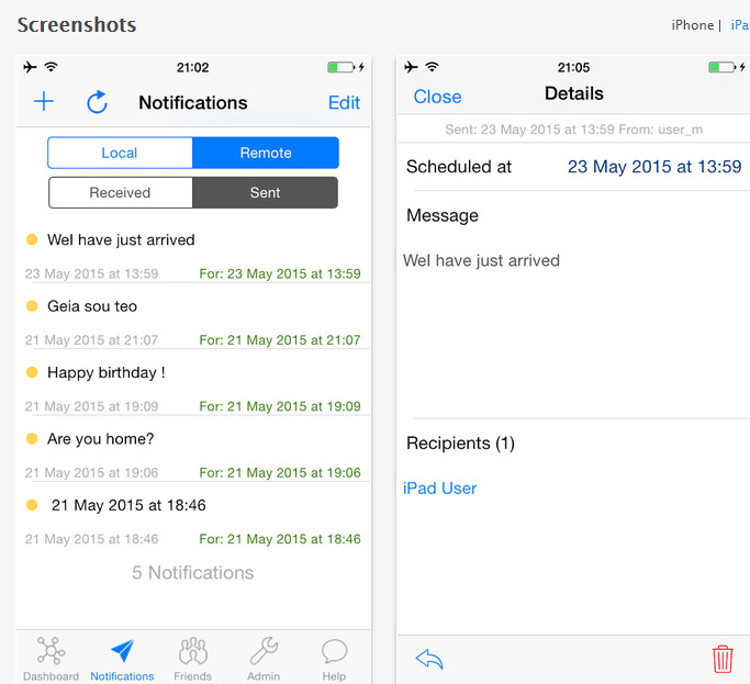 Notipush je aplikace, která je zaměřena na oznamování zaznamenaných událostí či úkolů. Mezi hlavní funkce patří: vytváření plánovaných připomínek, posílání či přijímání připomínek mezi přáteli, kteří mají také tuto aplikaci.
