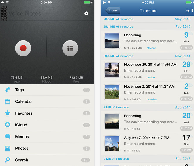 Aplikace Voice Notes Pro přináší zajímavý způsob, jak si zaznamenávat své poznámky pomocí hlasového nahrávání. Ke svým nahrávkám můžete přidávat poznámky či fotky. Nahrávat můžete přímo v MP3 a M4A.