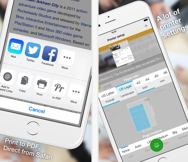 Velmi užitečný nástroj pro převádění webových stránek do PDF dokumentů přímo ze Safari. S aplikací Printability si také můžete vybrat velikost dokumentu či nastavit okraje dokumentu.