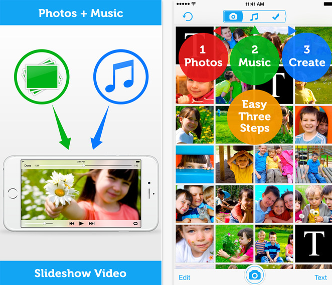 Vyberte pár fotografií, přidejte hudbu a fotovidia vám během okamžiku vytvoří překrásné slideshow video. Stačí pouze pár klepnutí a je hotovo.
