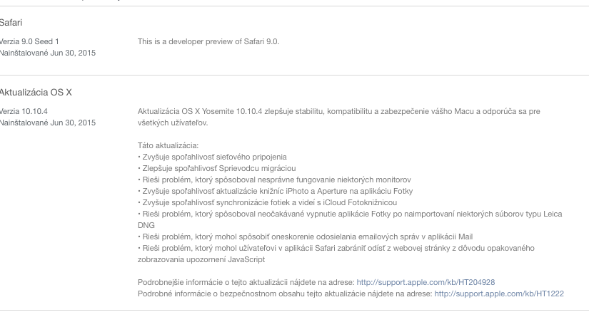 Spoločnosť Apple dnes po boku iOS 8.4 vydala novú aktualizáciu OS X 10.10.4, ktorú mali registrovaní vývojári a testeri niekoľko mesiacov k dispozícii. Nový update odstraňuje niekoľko zásadných chýb v systéme a taktiež odstraňuje proces Discoveryd, ktorý bol náhradou za rozhranie mDNSresponder v starších verziách OS X a slúžil na vyhľadávanie a pripájanie sa k WiFi sieťam. Ako sa ale zdá, inovovať sa v niektorých prípadoch neoplatí, keďže nový proces spôsoboval dlhodobé problémy s WiFi pripojením u užívateľov OS X Yosemite.