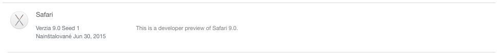 Apple dnes okrem aktualizácie OS X Yosemite 10.10.4 a iOS 8.4 vydal ďalšiu aktualizáciu, tentoraz určenú testerom nového softvéru. Jedná sa o update Safari 9.0, ktorý je dostupný teraz pre užívateľov systému OS X Yosemite a bude dostupný pre širokú verejnosť pravdepodobne už pred vydaním OS X El Capitan, ktorý by sme mohli prirovnať viacmenej k Windows 8.1, keďže opravuje chyby v Yosemite, sústredí sa na optimalizáciu a stabilitu a prináša aj niektoré vylepšenia, napríklad full-screen pre dve aplikácie, podobný multitaskingu vo Windows 8 a funkcii „Snap“ vo Windows 10.