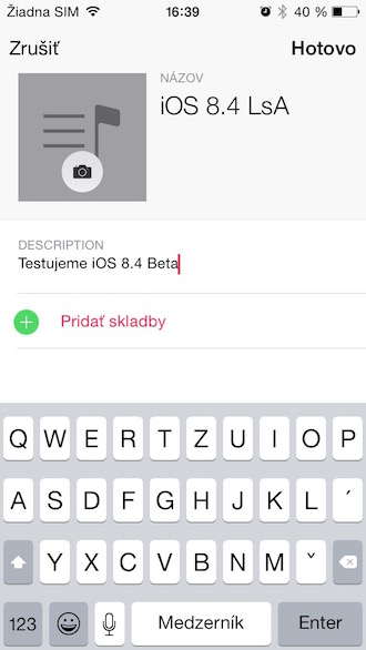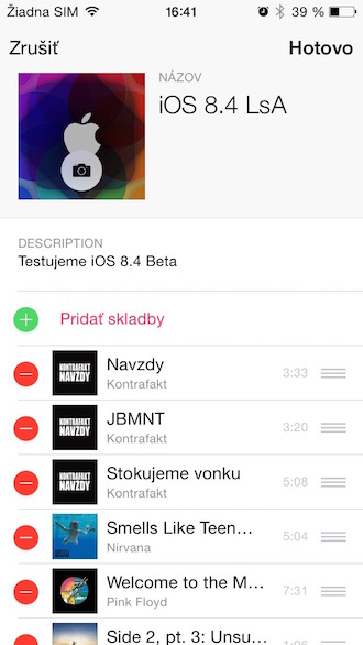 iOS 8.4 prináša inovovanú aplikáciu Hudba, ktorá priniesla aj zopár vylepšení týkajúcich sa playlistov. Tie rozhodne potešia ľudí, ktorí si chceli viac prispôsobovať svoje playlisty a aby tak učinili, veľakrát si vytvorili fiktívny album v iTunes s vlastným artworkom. Avšak s príchodom iOS 8.4 to už nie je problém, keďže inovované Playlisty je možné obohatiť nielen o názov, ale aj o vlastný obal albumu a o popis, v ktorom môžete svoj playlist stručne popísať.