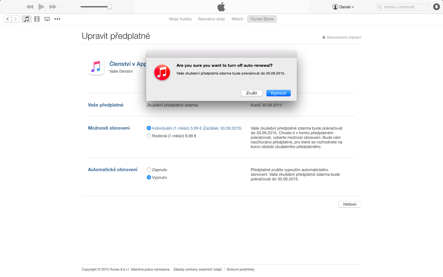 Pokud zrušíte předplatné Apple Music už nyní, nemusíte mít obavy, že by vám služba nadále nefungovala. Předplatné se zruší až po vyčerpaných třech měsících, tudíž Apple Music vyzkoušíte opravdu jen zdarma. Navíc, pokud se rozhodnete, že přeci jen chcete za Apple Music nakonec platit, stačí předplatné opět zapnout a službu naplno využívat.