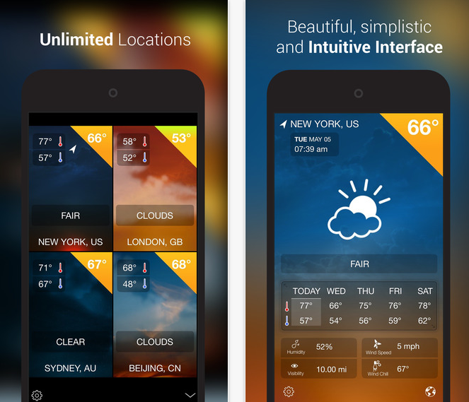 iWeather Pro je vše obsahující aplikací o počasí, která poskytuje přesnou předpověď. Aplikace je velmi intuitivní a uživatelsky příjemná. iWeather dokáže rychle určit vaší současnou polohu a nabídne vám předpověď počasí v dané lokalitě. Nabídne především skvělý design a podrobnou přepdověď.
