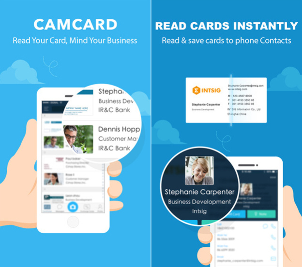 Jednoduchá aplikace na spravování a výměnu vizitek. CamCard umožní skenovat a skladovat všechny vaše nashromážděné vizitky. Můžete si také s ostatními vyměňovat vizitky i v momentě, kdy vám dojdou papírové nebo je zrovna nemáte při ruce. Dále můžete přidávat poznámky, připomínky a mnoho dalšího.
