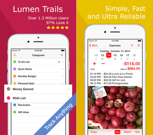 Lumen Trails Money Tracker umožňuje psaní poznámek, vytváření seznamů a sledování dalších činností ve vašem životě jako např. čas, cvičení, kalorie, tělesnou váhu, spánek a mnoho dalších. Kouzlo Lumen Trails spočívá v tom, že můžete sledovat prakticky jakoukoliv činnost, která vás napadne. Cena aplikace je za normálních okolností poměrně vysoká, takže určitě neváhejte a stahujte.