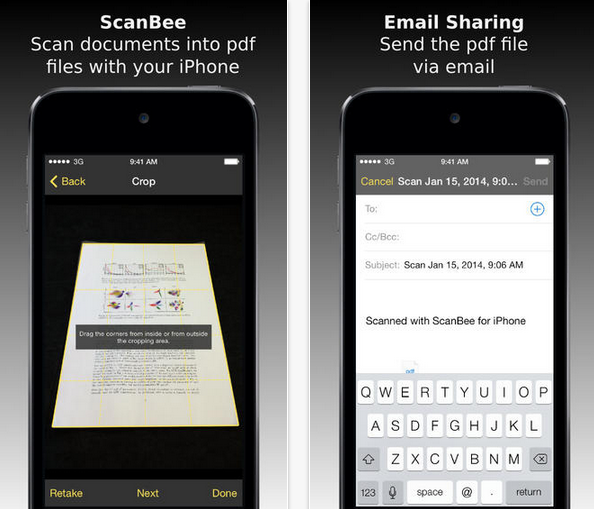 ScanBee přemění váš iPhone v přenosný skener. Umožní vám skenovat jakýkoliv dokument a promění ho ve vysoce kvalitní PDF soubor. Dokumenty lze sdílet za pomocí emailu. Aplikace také umí automaticky vyhledat okraje stránky.