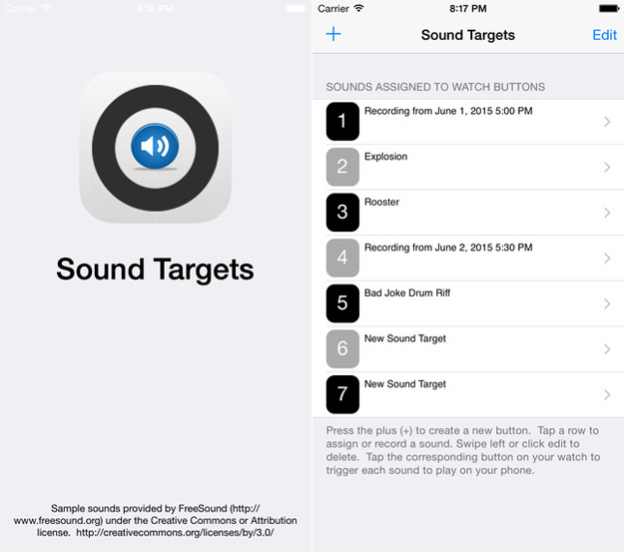 Sound Targets vám umožní rychle nahrávat a přehrávat audio na vašem iPhonu z Apple Watch. Spusťte nahrávání nebo zvukové efekty na vašem iPhonu stisknutím tlačítka Apple Watch.