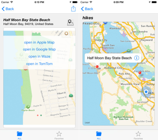 S touto aplikací můžete vytvářet a podporovat místa, která jste navštívili a zároveň chcete mít rychlý přístup k základním informacím o dané lokalitě. K oblíbeným místům můžete přidávat komentáře a obrázky. Své lokace můžete otevřít v TomTom, Waze, Google a Apple mapách.