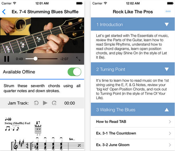 Tato aplikace může být velkým přínosem pro ty z vás, kteří se chtějí naučit, jak zahrát na kytaru různorodé skladby. Aplikace nabízí možnost naučení správného prstokladu a možnost zvolení písniček z různých hudebních stylů – rock, pop, folk či blues. Hlavní myšlenkou Rock Like The Pros je naučit vás věci, které se chcete naučit a které potřebujete k tomu, aby se z vás stali lepší hráči na kytaru.
