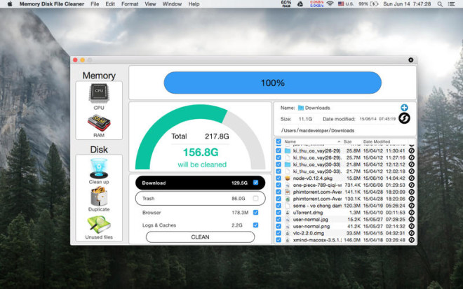 Rychlý a výkonný čistič CPU, RAM, disku a souborů. Automaticky optimalizuje paměť po uzavření aplikací a nevyužitou paměť učiní použitelnou pro ostatní aplikace. Optimalizuje paměť za pomocí jednoho kliknutí. Podporuje 30 jazyků.