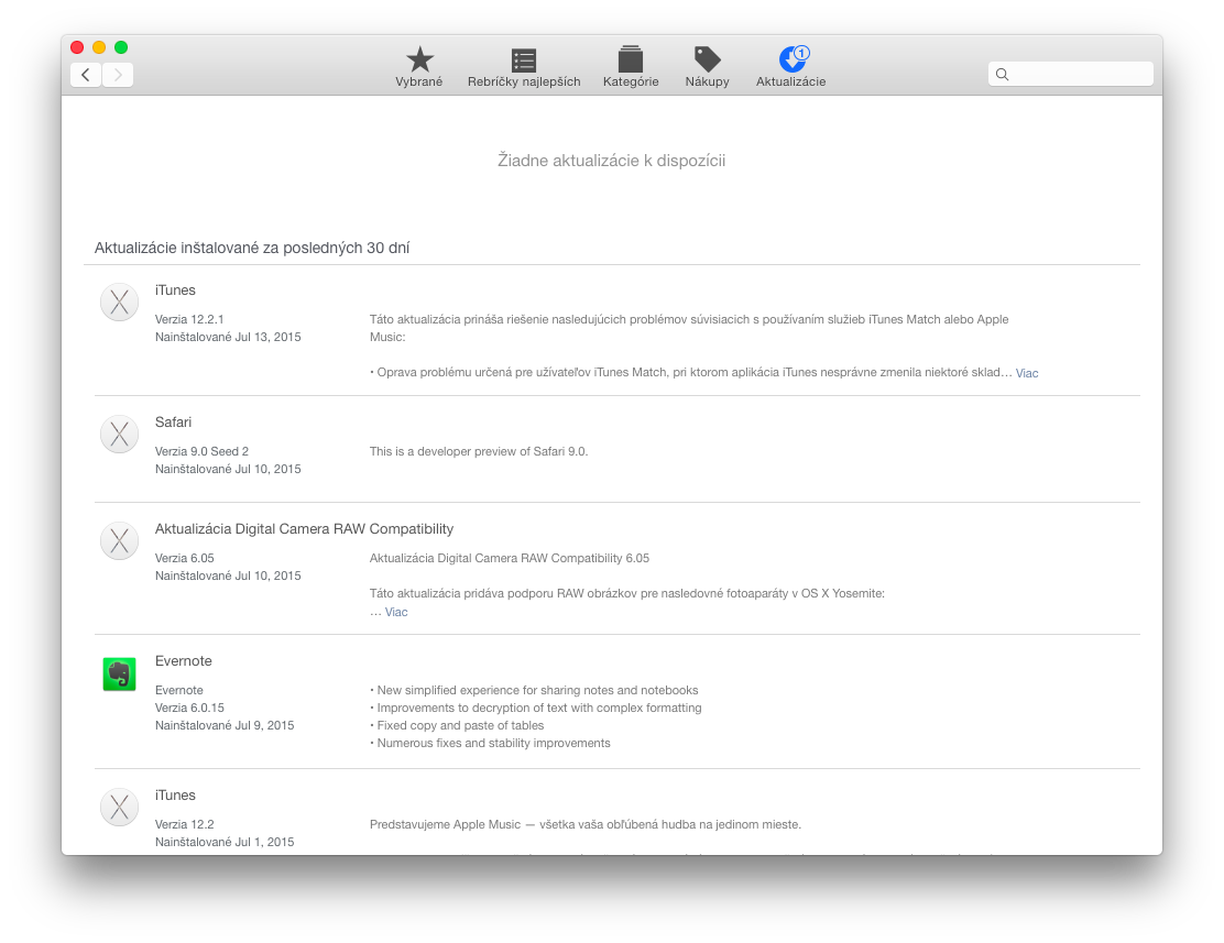 V redakcii mimo iného dúfame, že budúca aktualizácia vyrieši problém s nezobrazovaním updatov v sekcii Software Updates. Systém 10.10.4 sa totiž chová naozaj zvláštne a mechanizmus vás síce upozorňuje na dostupnosť aktualizácie, ale zároveň píše, že žiadna aktualizácia nie je k dispozícii.