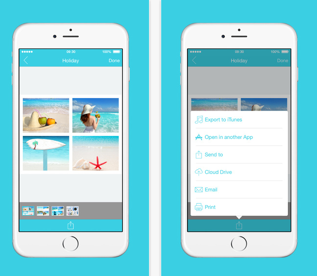 Převádějte své fotografie do PDF souborů. Vyberte jednu, dvě nebo čtyři fotografie na stránku a vytvářejte pěkné koláže z vašich oblíbených snímků. Po úpravě můžete snadno posílat vaše snímky emailem či zprávou a zálohovat na Cloud Drive. Své fotografie můžete také rovnou vytisknout.