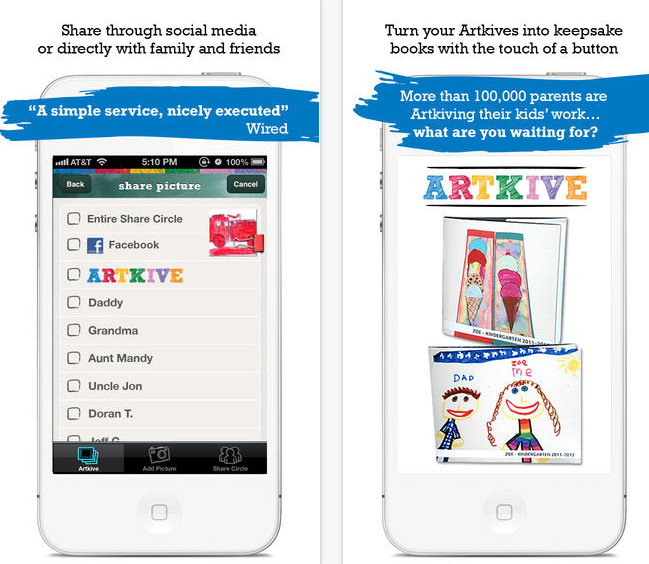 Už se nemusíte nikdy cítit provinile, když budete vyhazovat umělecké výtvory vaší ratolesti. Proměňte váš Artkive ve vysoce kvalitní knihu plnou všemožných výkresů a obrázků. K jednotlivým výkresům můžete přidávat jméno dítěte, věk, datum vytvoření či název. Každý výtvor můžete sdílet prostřednictvím sociálních sítí či si je můžete rovnou vytisknout.