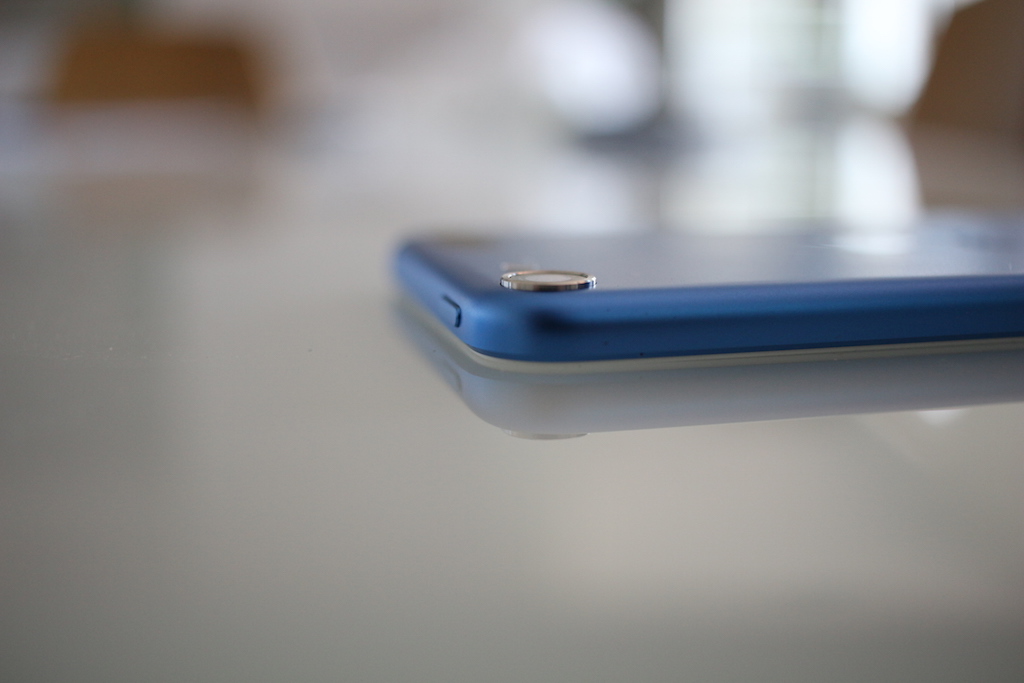 Vytŕčajúci fotoaparát je vec, ktorá bola kritizovaná u iPhone 6, ale Apple sa ju rozhodol zachovať naďalej, aspoň u najnovšieho iPodu. Takéto „obohatenie“ iPodu sme mohli vidieť už pri predošlej generácii a vedeli sme si ho vysvetliť jedine tak, že Jony Ive a jeho tím spravili príliš tenké zariadenie na to, aby sa doň zmestil fotoaparát a tak sa Apple rozhodol vyriešiť to po svojom. Na druhú stranu, ak by som si mal porovnať vytŕčajúce fotoaparáty u jednotlivých zariadení, tak na iPode sa mi páči oveľa menej ako na iPhone. U iPhone 6 si Apple dal záležať aspoň na detailoch a preto je kovový rámček skosený, zatiaľ čo tu ide o plochý kovový pliešok, do ktorého je zapustený objektív. Ďalší taký problém spočíva vo veľkosti. Na iPode je skrátka príliš veľký a kazí dojem z inak dokonalého dizajnu. Mimochodom, iPod touch a iPhone 5c sa na seba veľmi podobajú, rozdiel je len v hrúbke, použitých materiáloch a aj vo farbách.